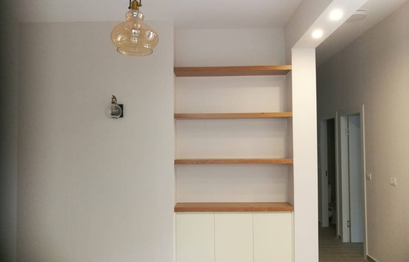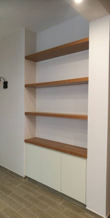 ניצלנו כל מקום אפשרי לגובה (מאחר והתקרה מאוד גבוה), לדוגמא- הארונות העליונים בתמונה.